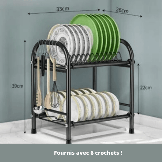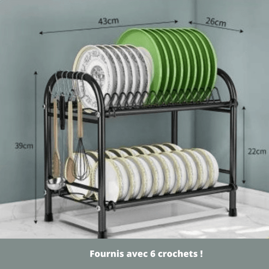 Egouttoir Vaisselle Surélevé Noir Inox, 6 supports